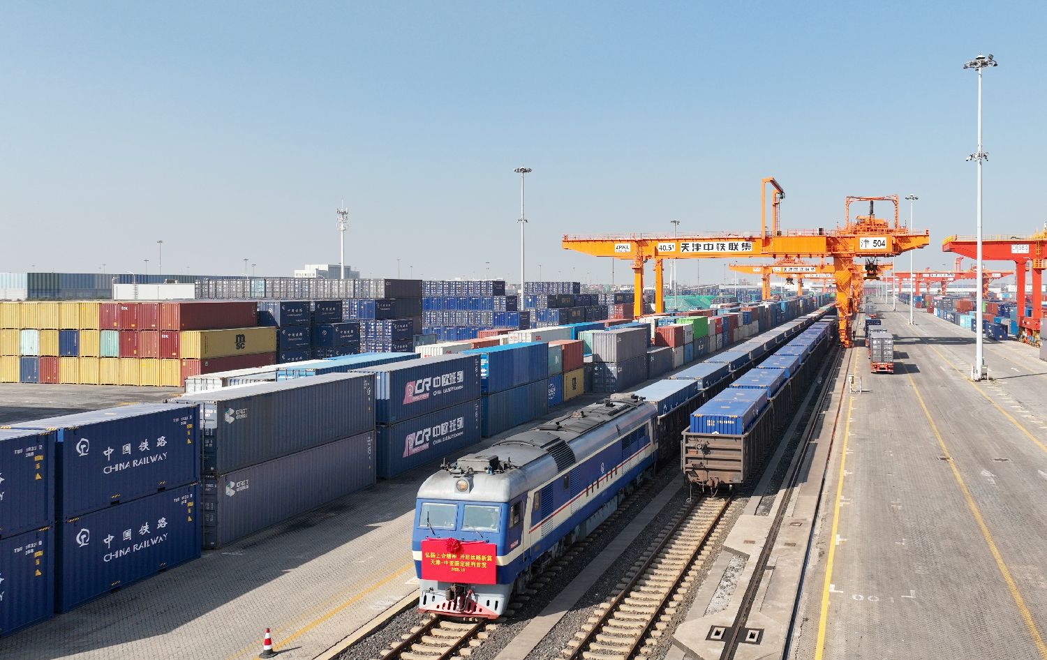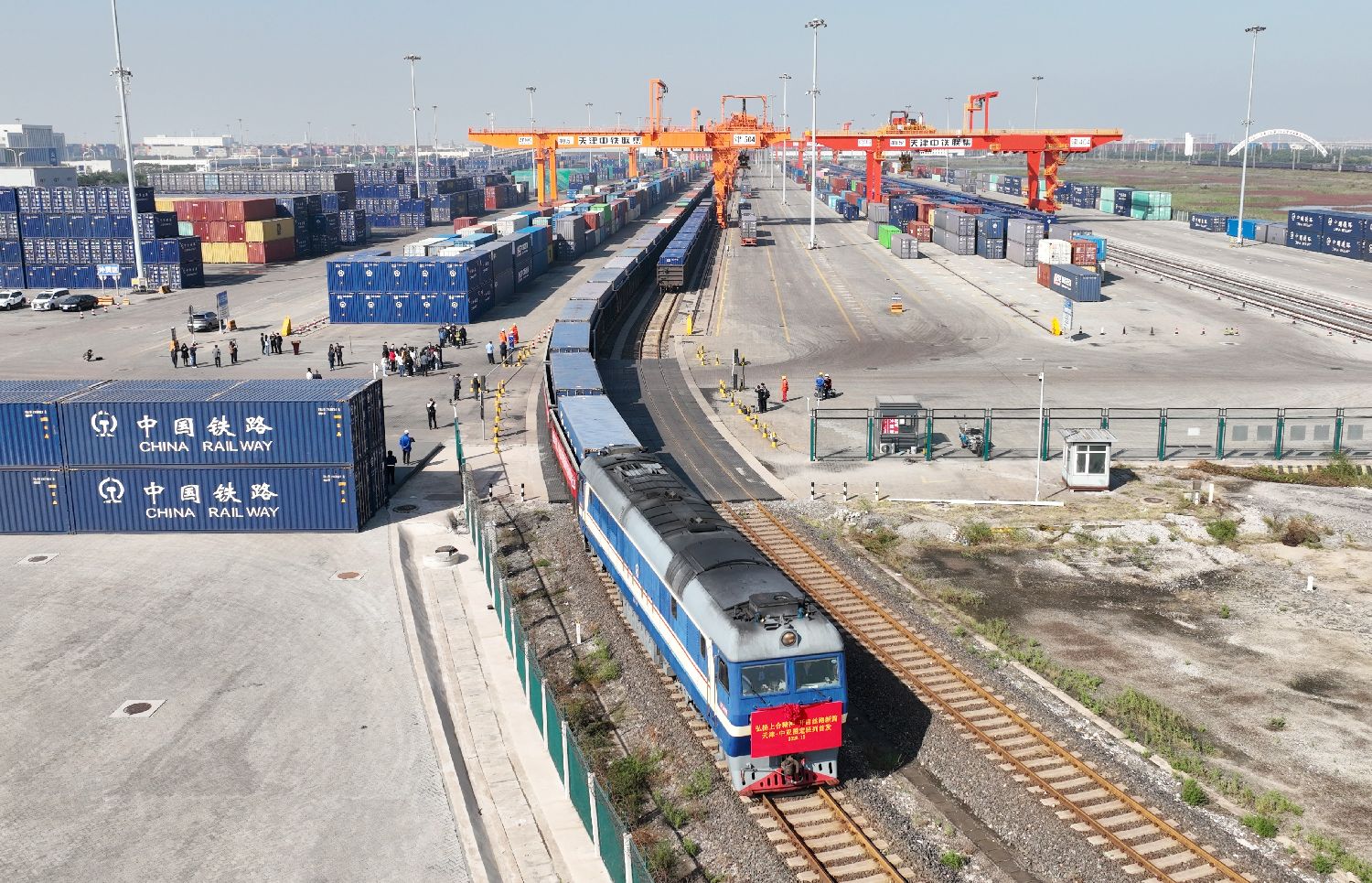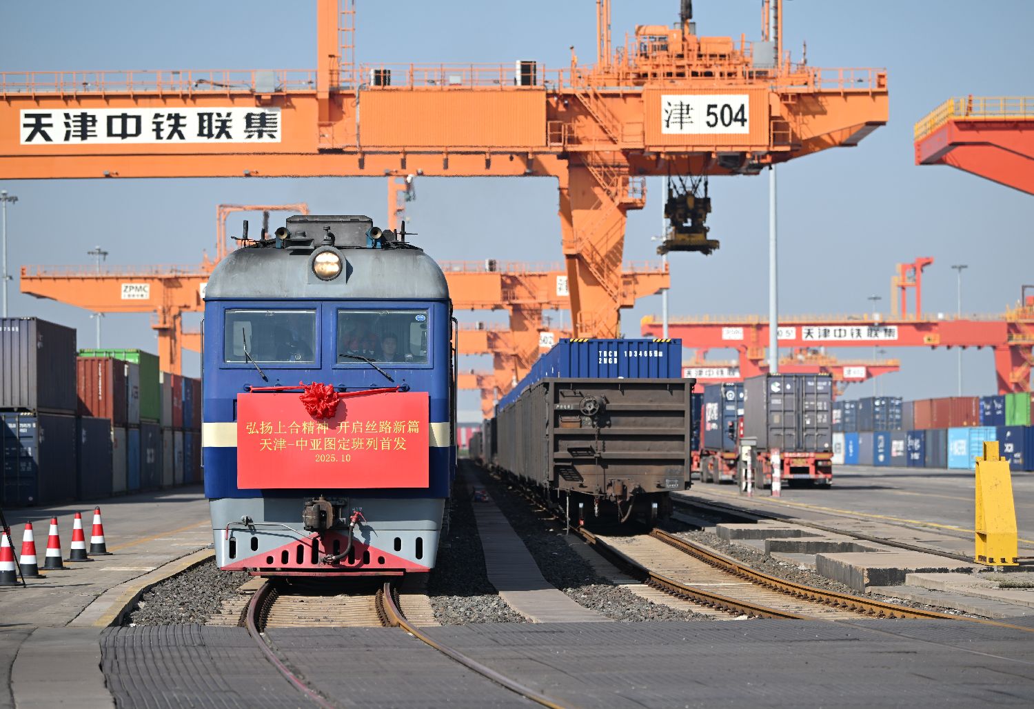10月13日拍摄的天津-中亚图定班列首发现场。