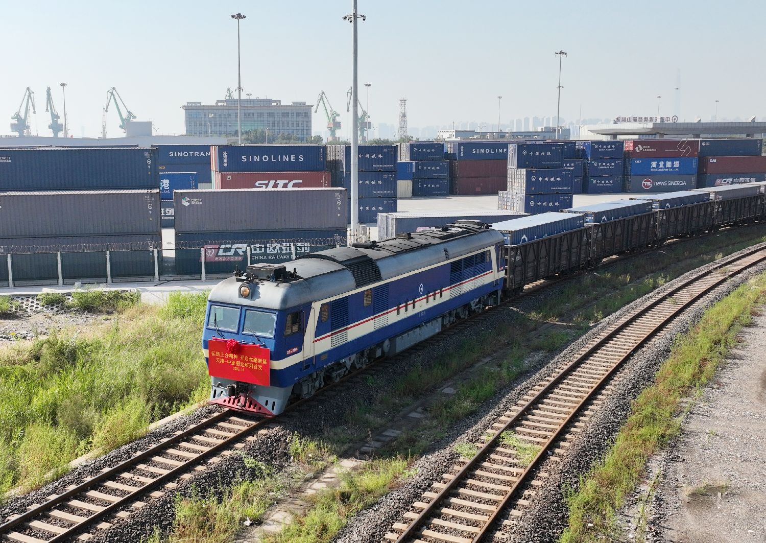 据了解,本趟班列共载有55个40英尺集装箱,运输周期约10天,后续将以每周一列的频次常态化开行。这是由天津始发、经霍尔果斯口岸出境的中亚班列首次纳入图定线路。