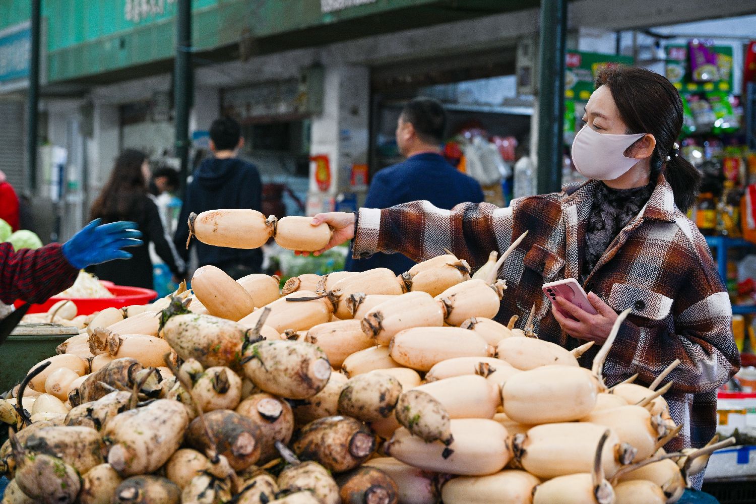 10月15日,消费者在江苏南京一家农贸市场选购蔬菜。