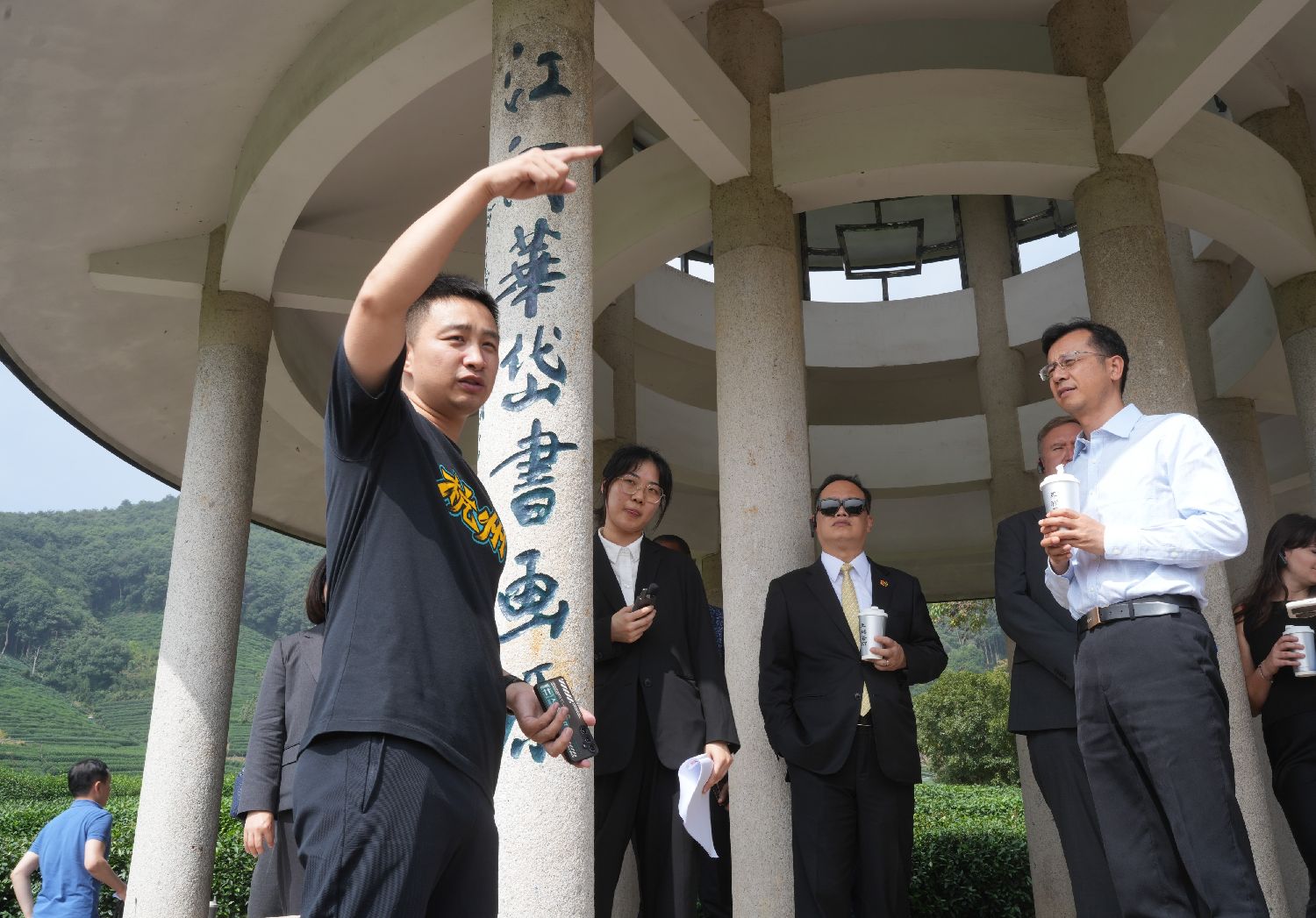 10月15日,驻华使节在杭州外桐坞村参观龙井茶园。