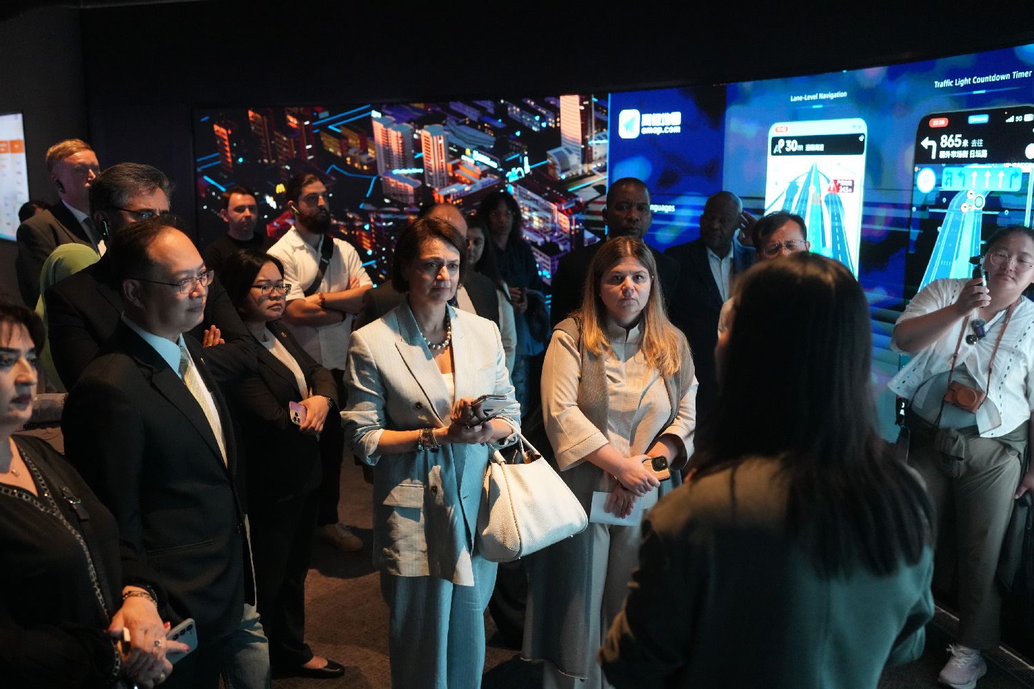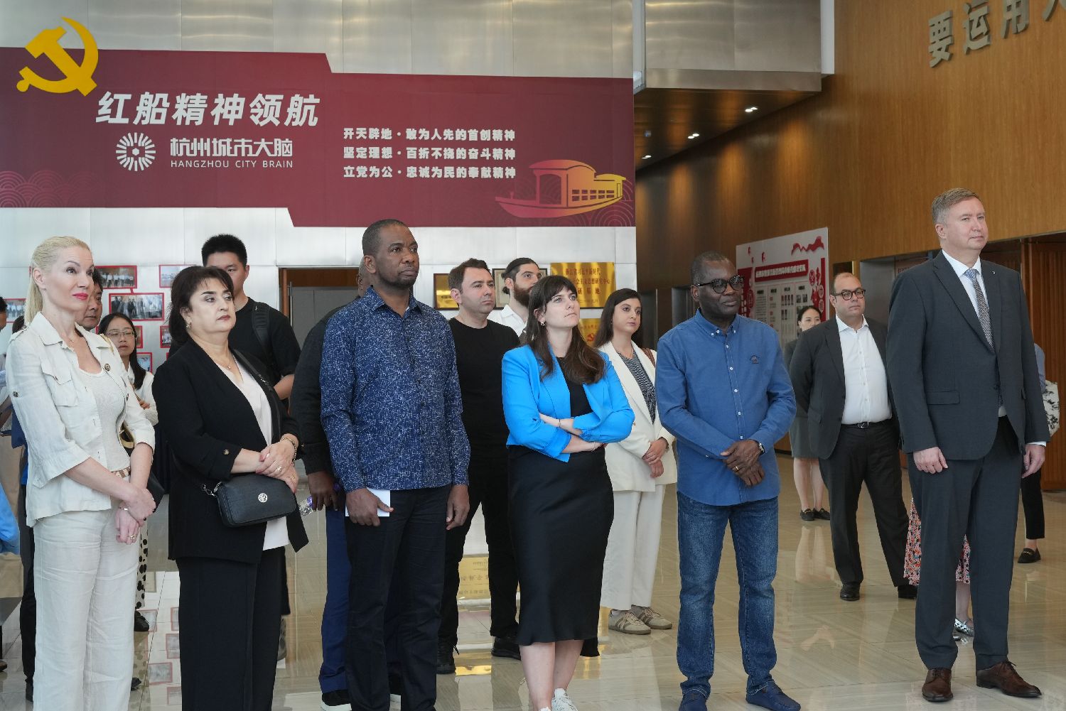 10月15日,驻华使节在杭州城市运营指挥中心参观。