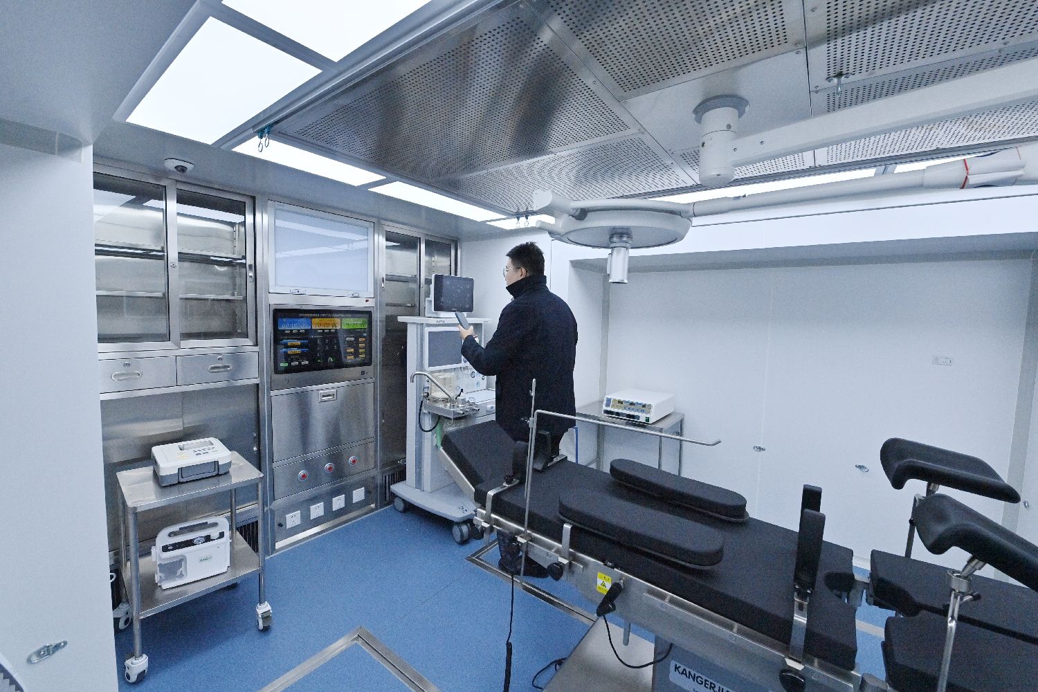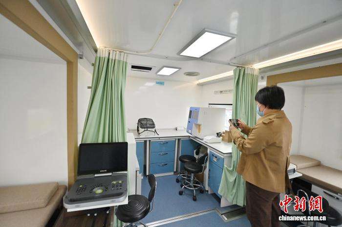 10月15日,参观者在参观移动医院手术车。(图片来源:中新社)