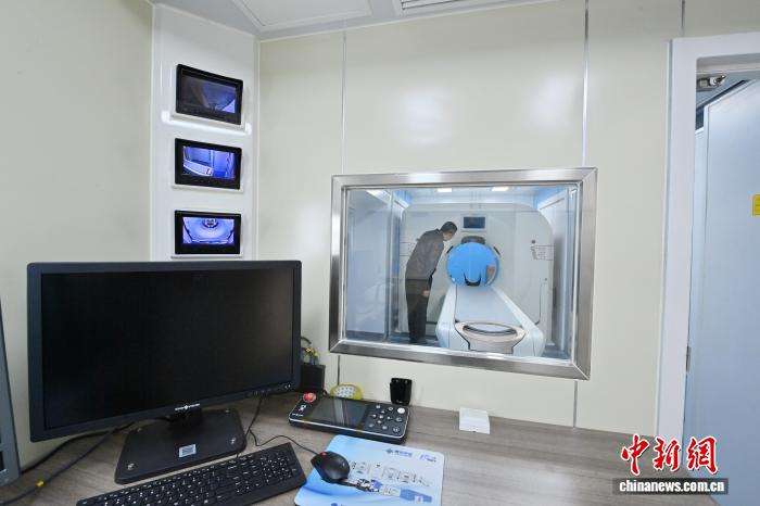 10月15日,参观者在参观移动医院CT车。(图片来源:中新网)