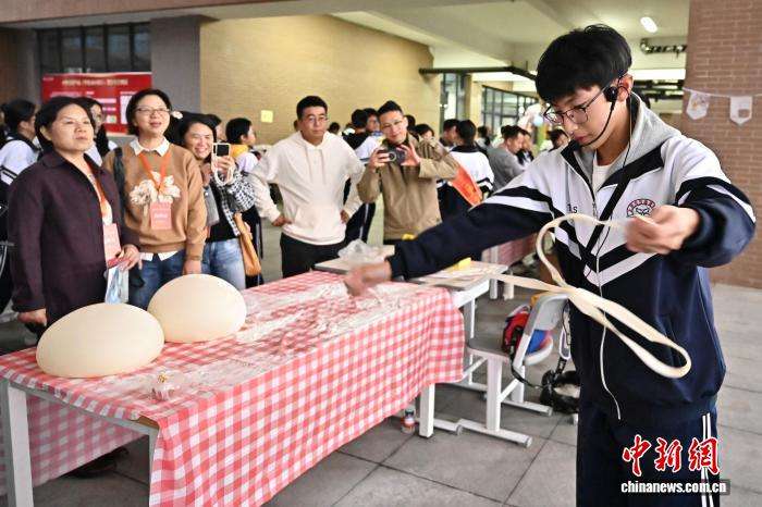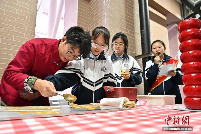 图为学生体验面食制作技艺。(图片来源:本文图片均来自中新网)