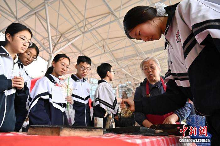 10月16日,山西省太原市外国语学校举办“非物质文化遗产在校园”活动。非遗代表性项目传承人与学生互动体验,增强学生对传统文化的理解与兴趣。