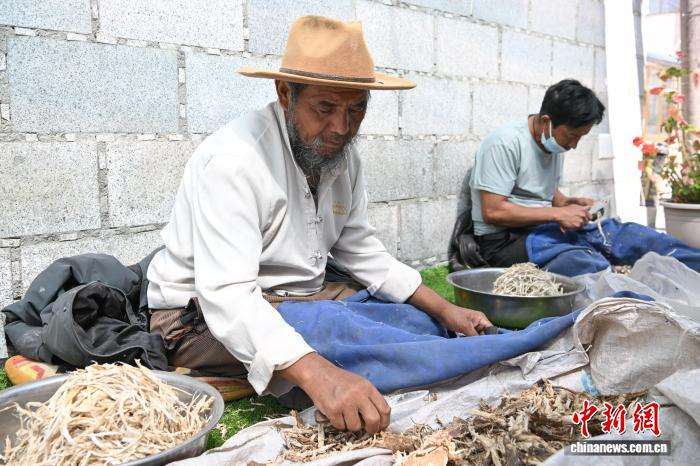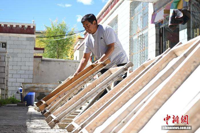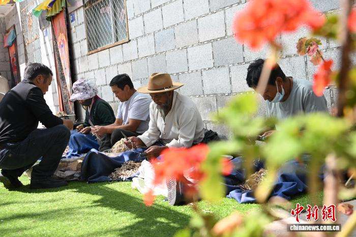 图为尼木雪拉藏纸农牧民专业合作社员工在晾晒藏纸。