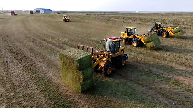 (中国紫花苜蓿种植面积最大的内蒙古阿鲁科尔沁旗在采收)