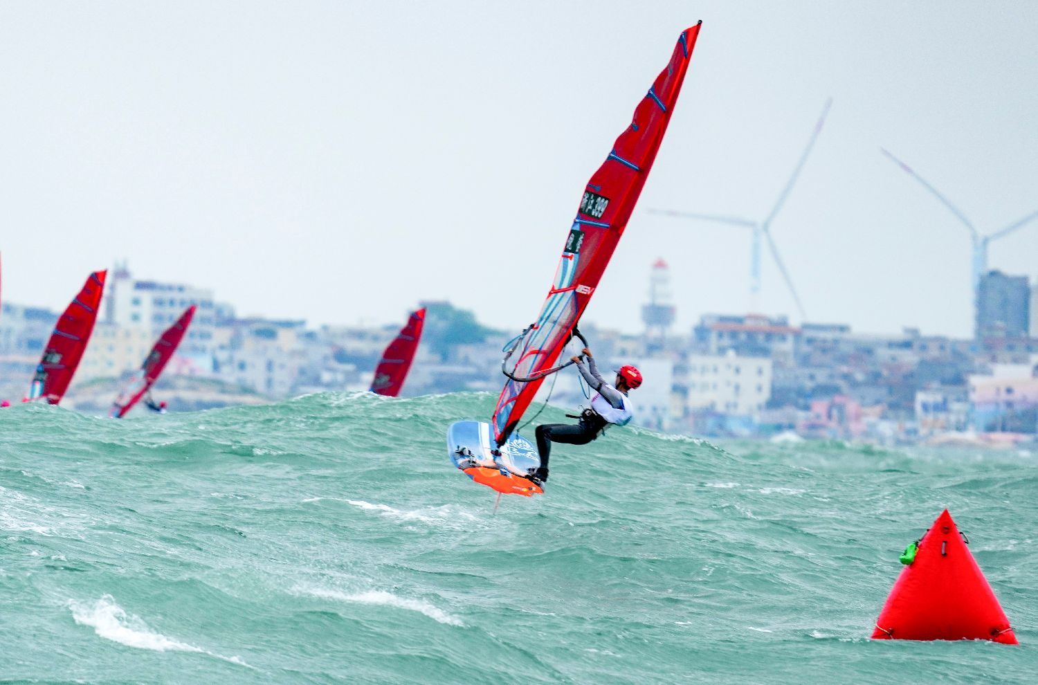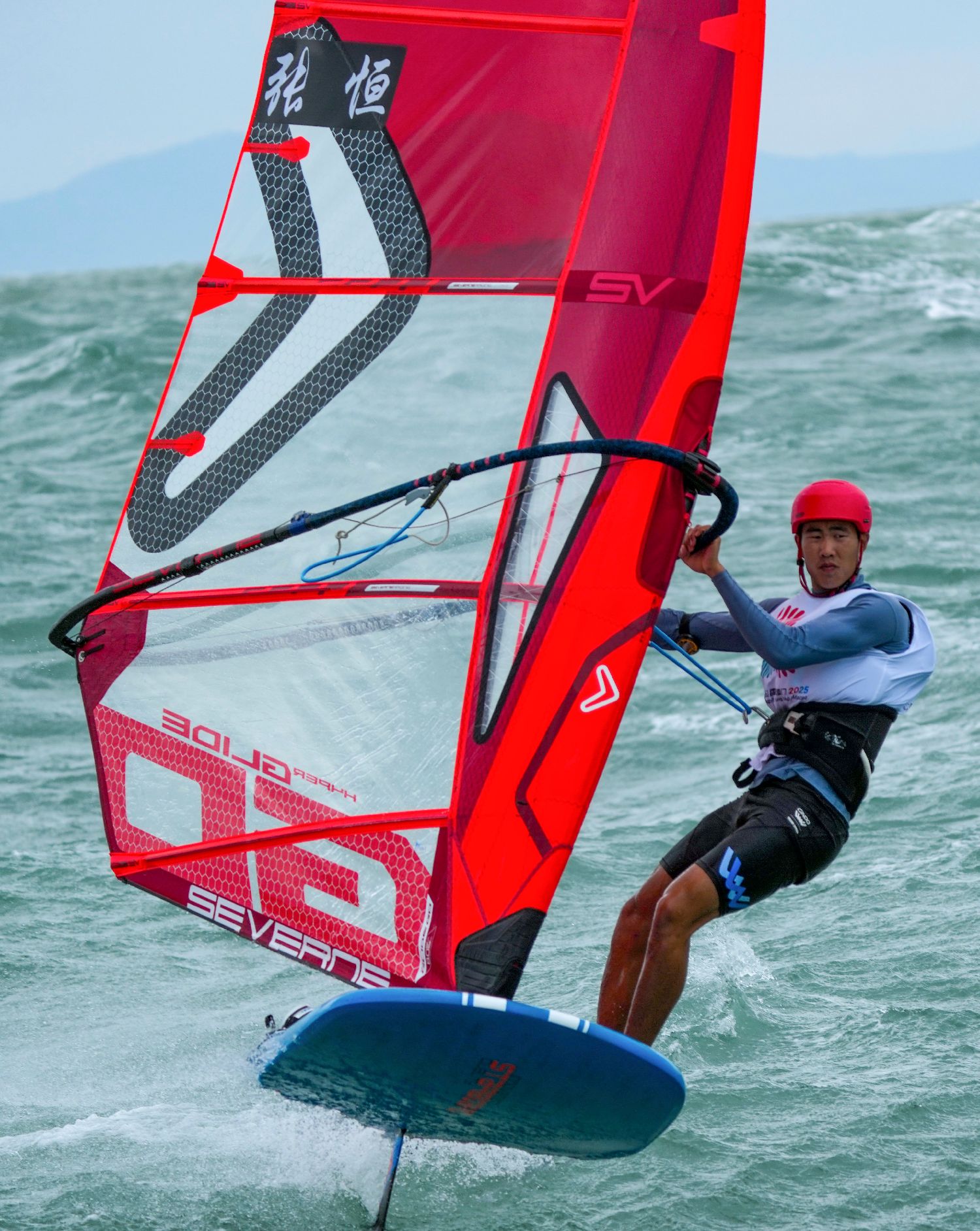 10月20日,山西队选手张恒在男子水翼帆板级比赛中。当日,第十五届全运会帆船项目第一阶段比赛在广东省汕尾市举行。