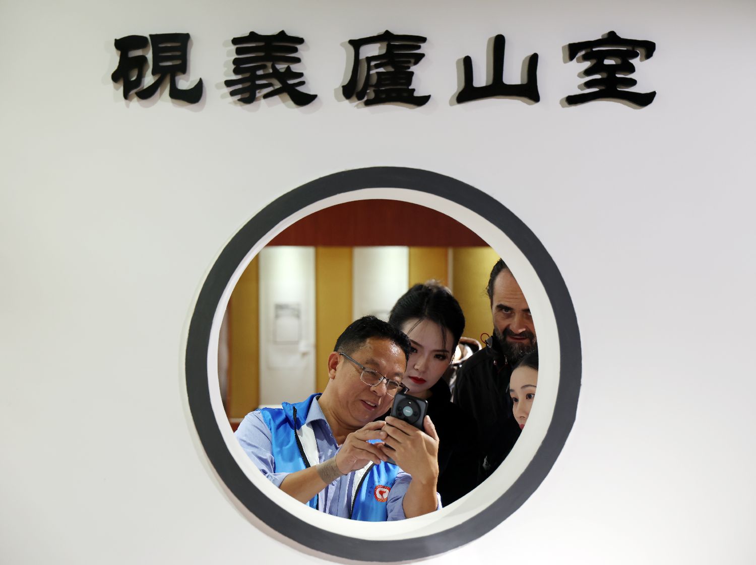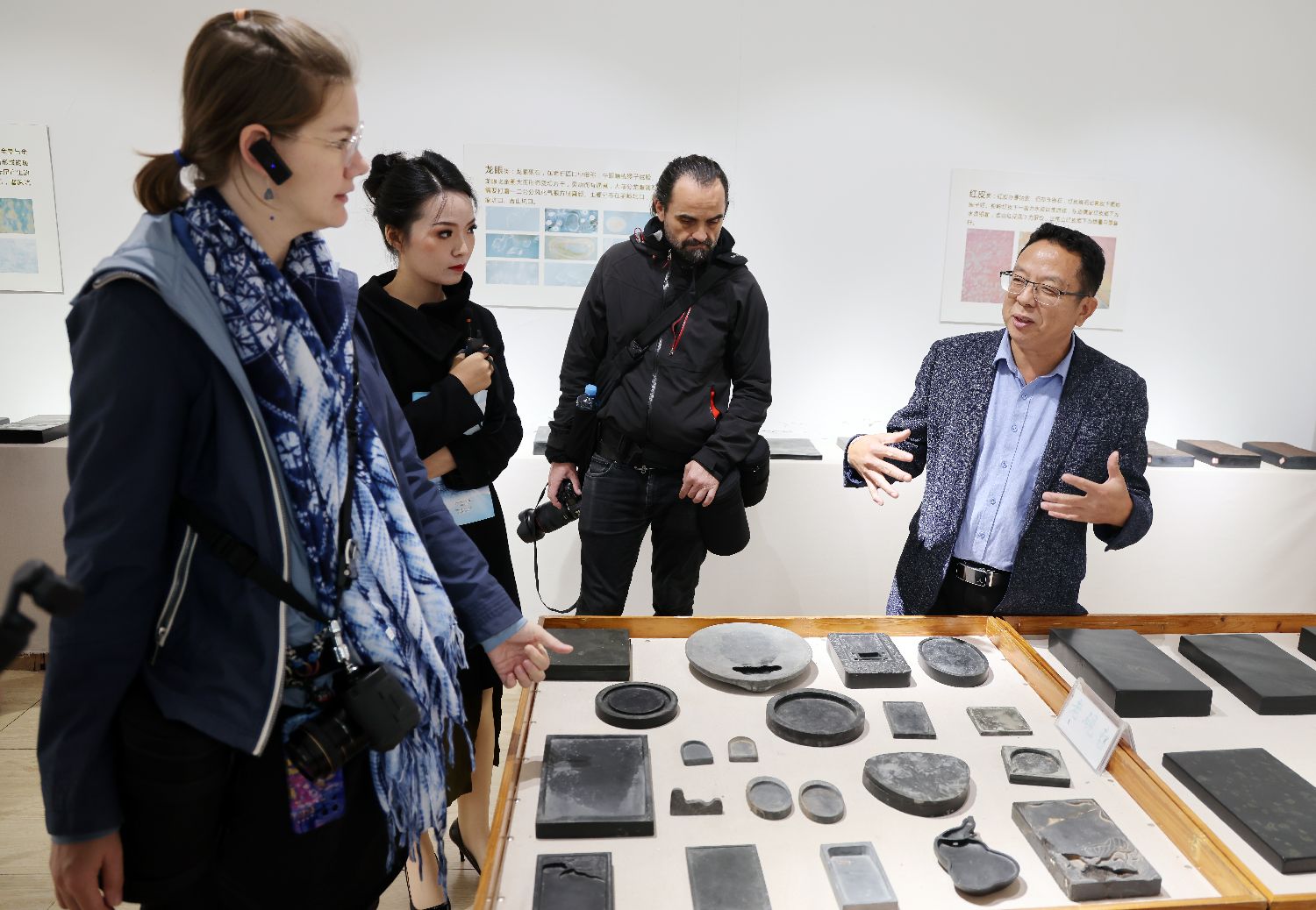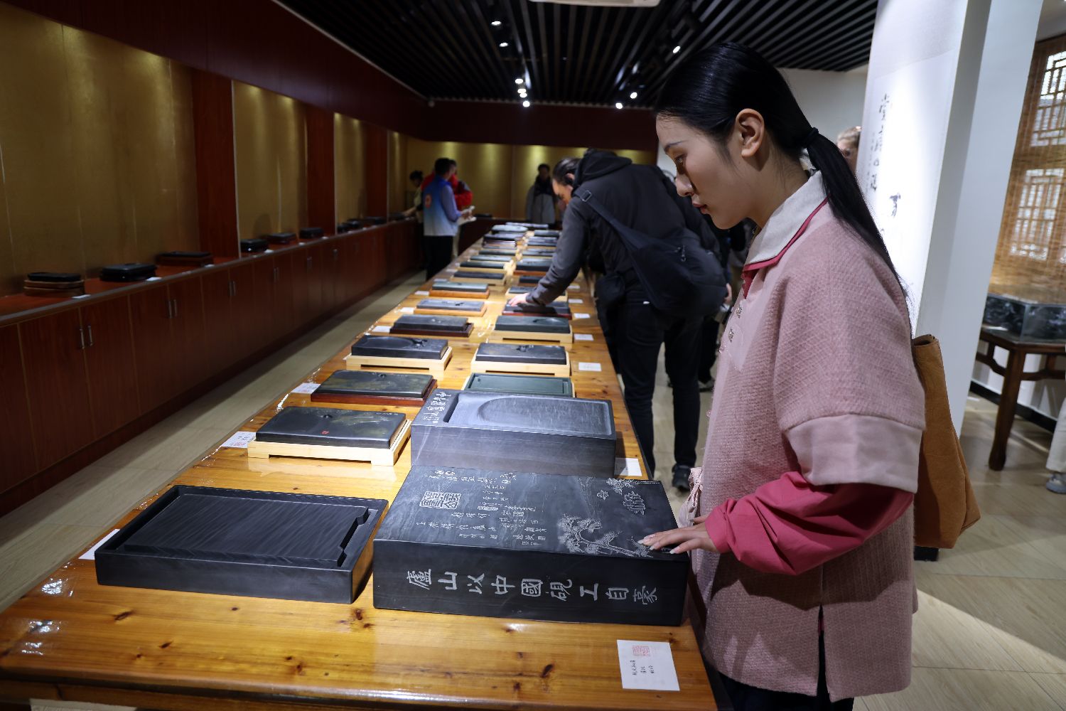 10月20日,参观者在江西庐山秀峰景区的庐山金星砚文化博物馆观看制作好的金星砚。