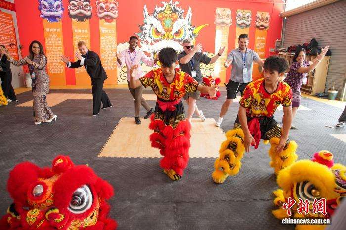 图为采访团成员参访柳江区狮韵醒狮培训基地。