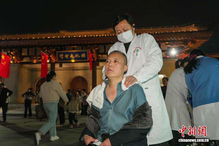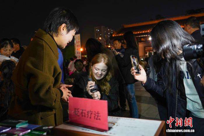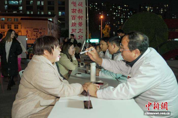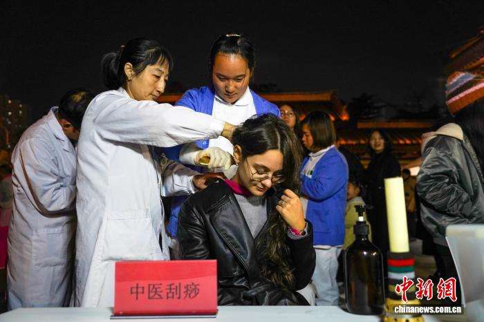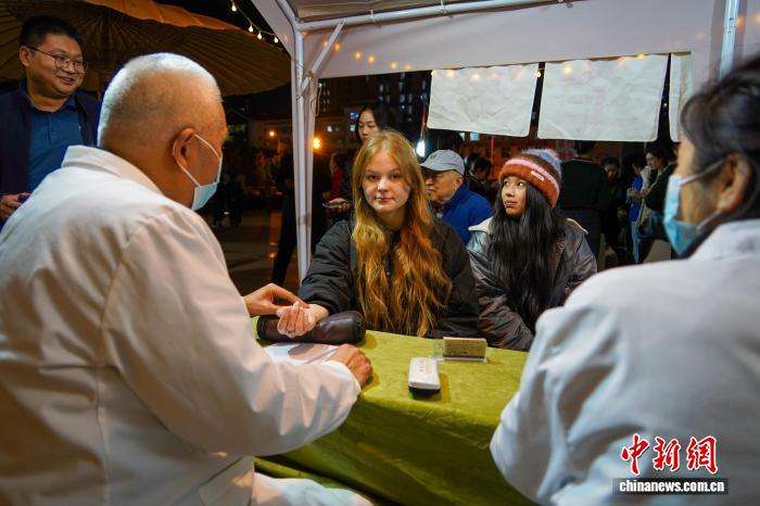 10月22日晚,河南南阳“中医药夜市”人气足,医护人员现场展示推拿、刮痧、耳贴等传统中医疗法,免费为民众提供健康咨询和诊疗服务,吸引不少中外友人前来体验。