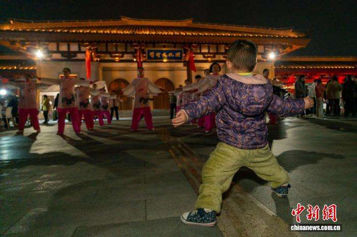 图为市民在夜市现场练习八段锦。(图片来源:本文图片均据中新网)
