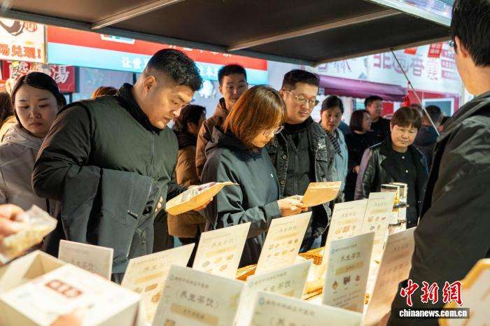 图为养生茶饮吸引市民选购。