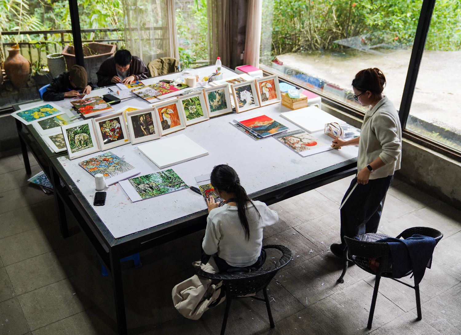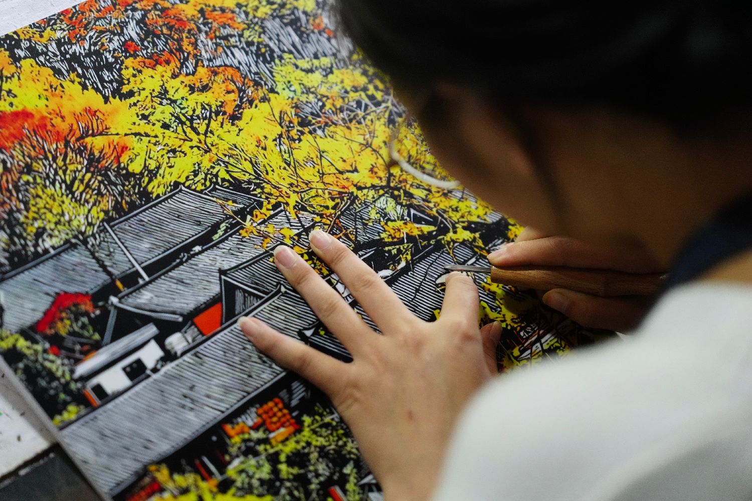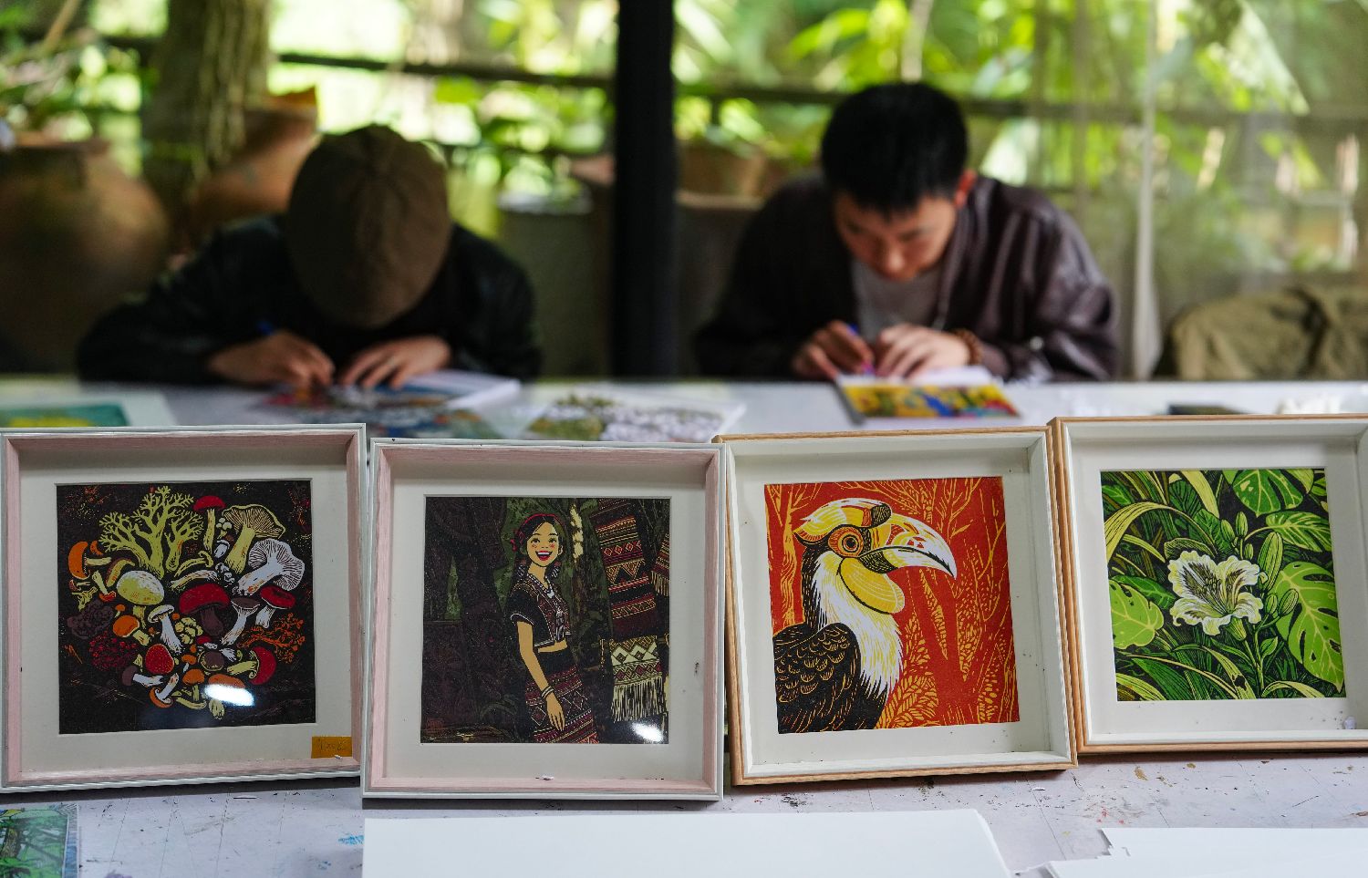 10月22日,学生在云南普洱学院那柯里绝版木刻教学实践基地进行版画创作。(图片来源:本文图片均据新华社)