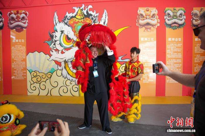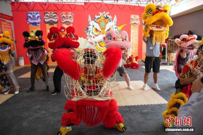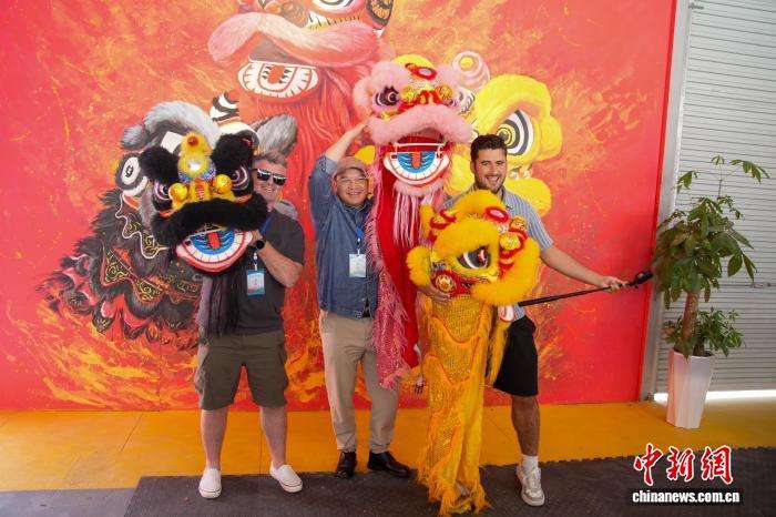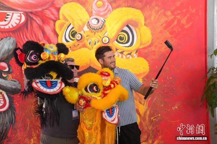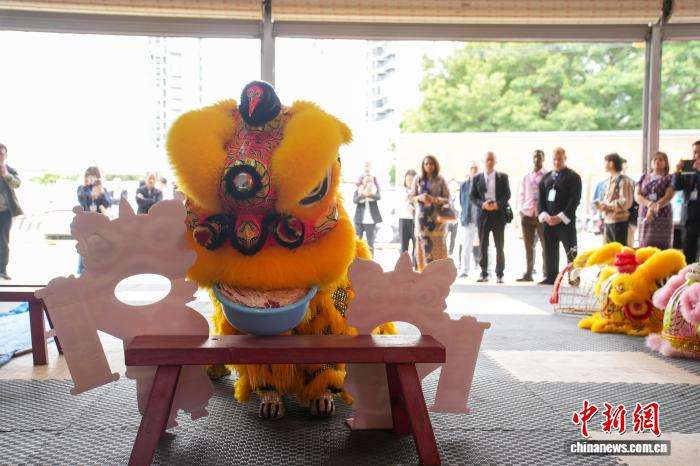 采访团成员在观看醒狮表演。(图片来源:本文图片均据中新网)