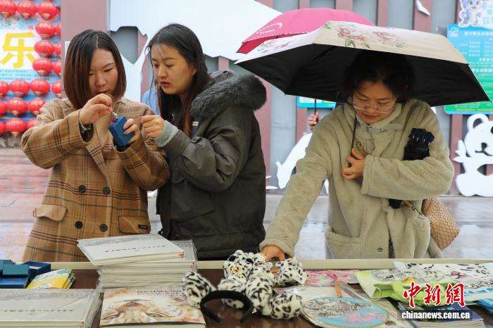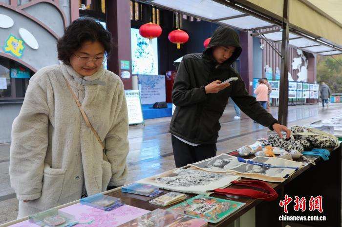 图为游客参观雪豹主题文创产品。