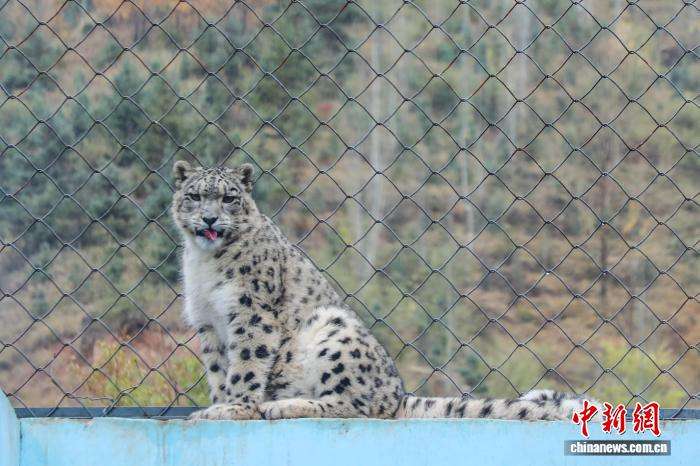图为该园明星雪豹“凌小芒”吐舌卖萌。