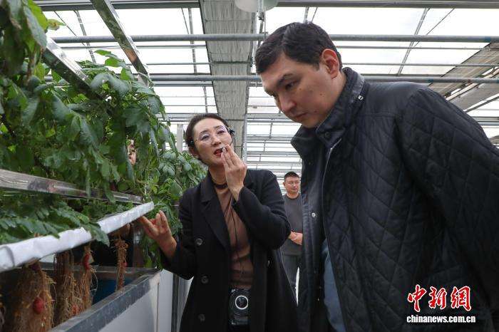图为10月21日,哈萨克斯坦阿拉木图州副州长巴基图雷·巴克特努尔(右一)在互助县国家现代农业产业园参观。