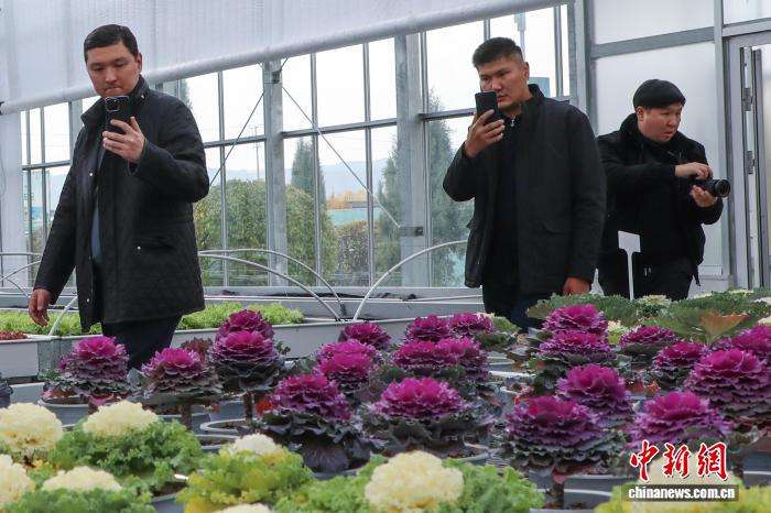 图为10月21日,代表团成员参观互助县国家现代农业产业园培育的羽衣甘蓝。