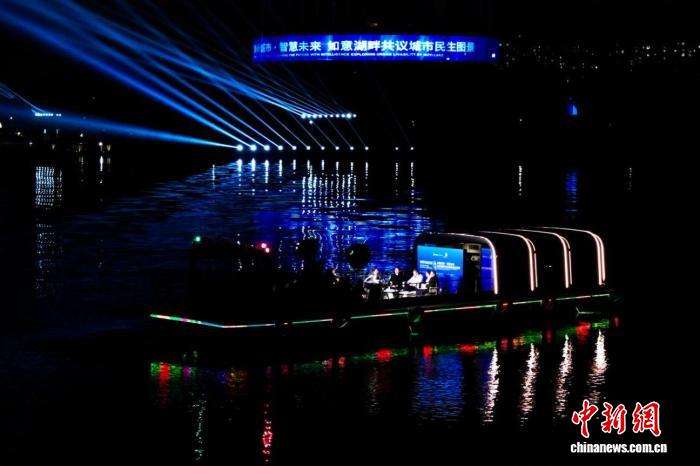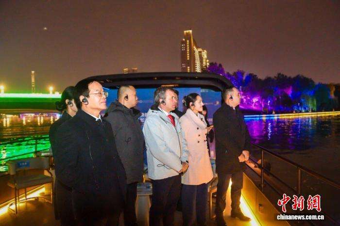 图为中外市长游船赏景夜话。