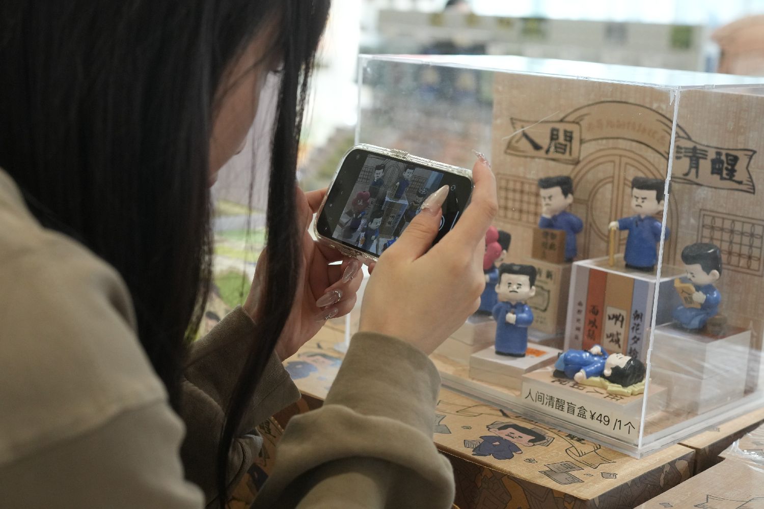10月23日,游客在鲁迅故里拍摄文创产品。(图片来源:本文图片均来自新华社)
