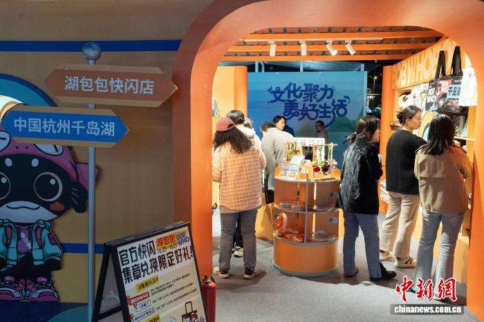 10月23日,文创市集展出了杭州各地的特色文创。当晚,2025千岛湖创意生活周在杭州市淳安县开幕。活动以千岛湖全域为舞台,通过文创展览、文艺展演、美食市集等多元形式,为游人呈现一场融合传统与现代的文化盛宴。(图片来源:中新社)