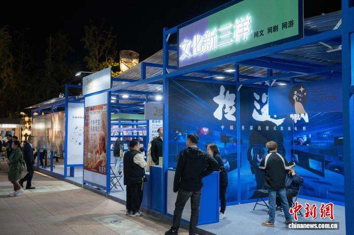 10月23日,当地设立的文化“新三样”(网文、网剧、网游)展位。(图片来源:中新网)