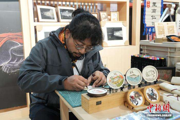 手工艺人创作特色鱼绘文创。(图片来源:中新网)