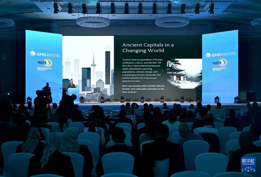 10月24日拍摄的“世界市长对话·郑州暨2025郑州国际旅游城市市长论坛”现场。(图片来源:本文图片均据新华社)