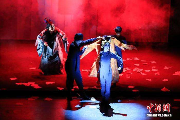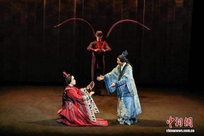 图为中央戏剧学院表演的话剧《庄周梦蝶》演出场景。(图片来源:本文图片均来自中新网)