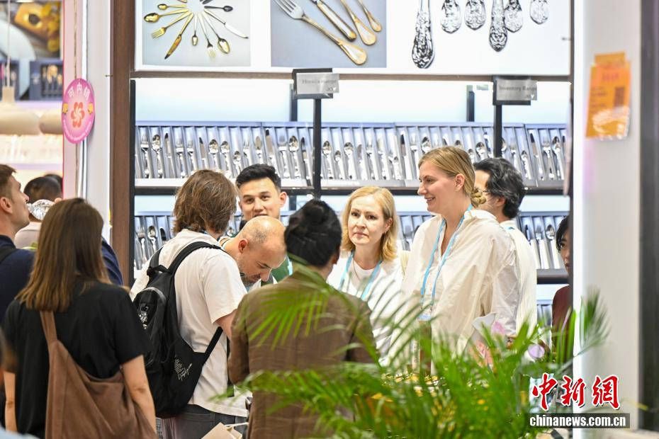 境外采购商在餐厨用具展区挑选产品。