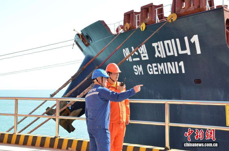 10月27日,船舶在码头进行卸船作业。(图片来源:中新社)