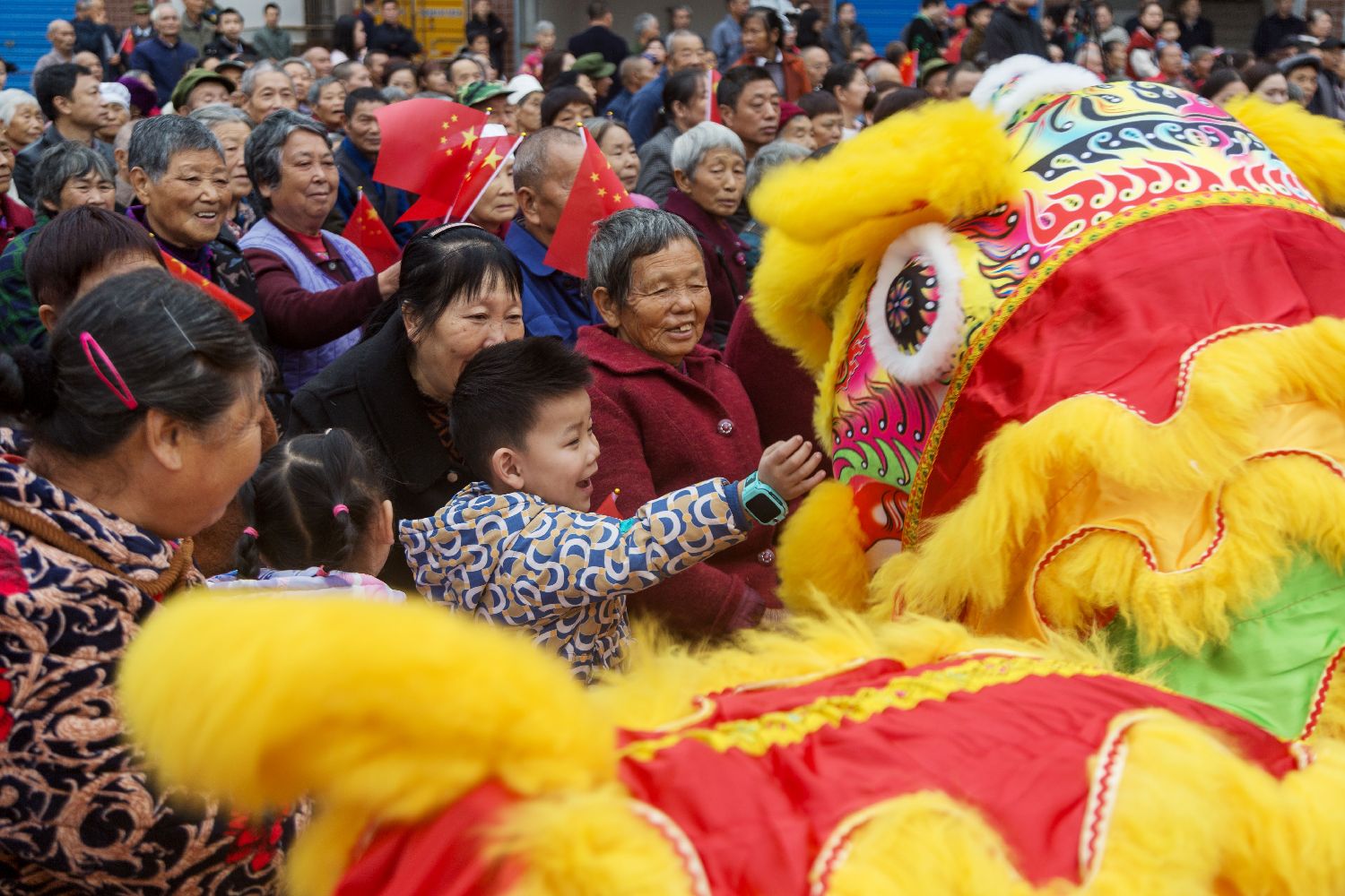 10月26日,在四川省达州市达川区双庙镇魏塘坡村庆祝重阳节活动中,民间艺人为老人们进行狮舞表演。