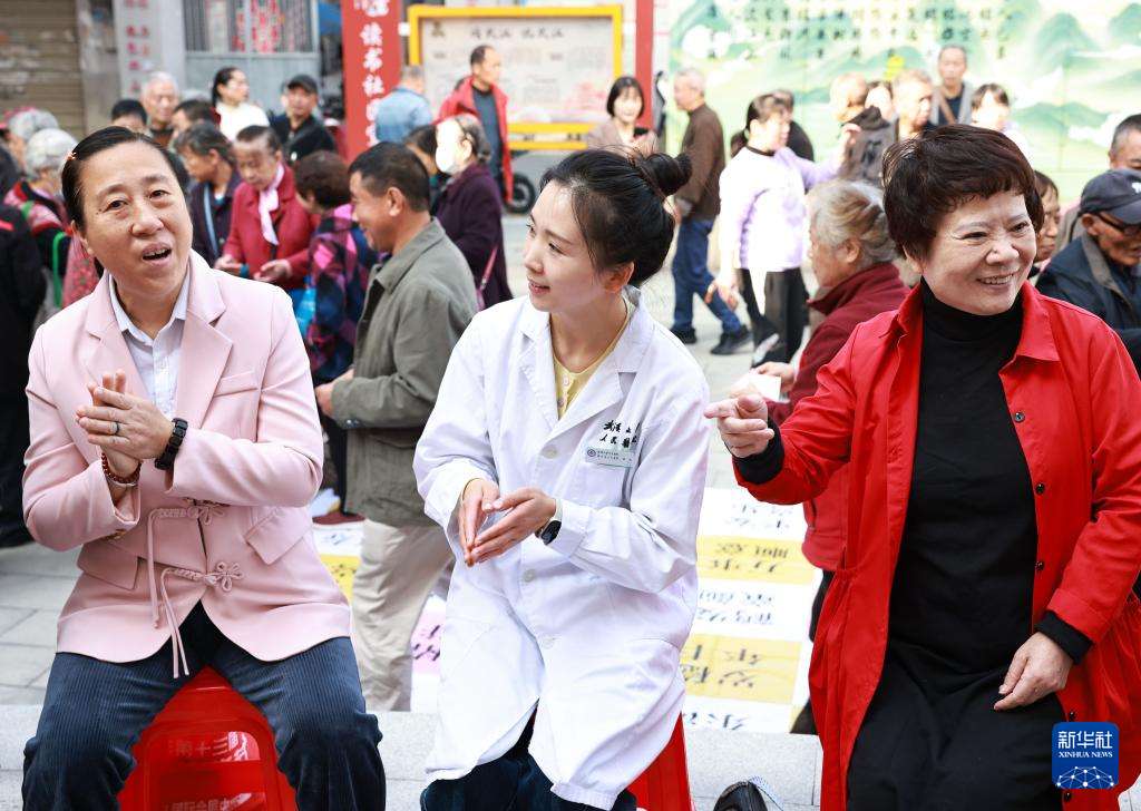 10月28日,湖北省人民医院医务人员为武汉市武昌区黄鹤楼街道读书社区老年人提供音乐疗法服务。(图片来源:本文图片均据新华社)