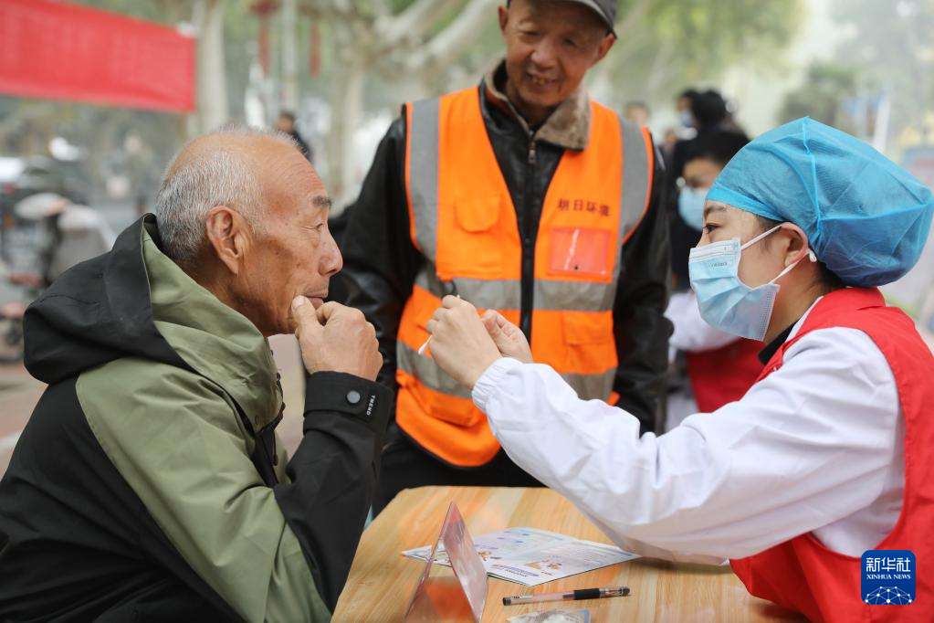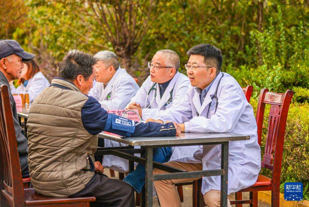 10月28日,河南省焦作市温县的医务工作者为老人义诊。