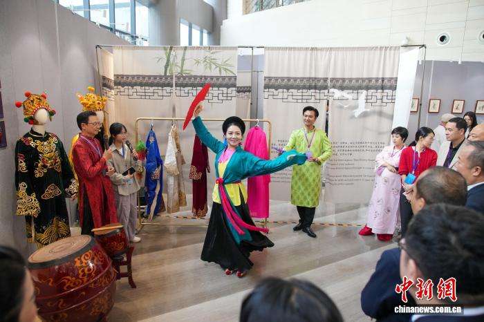 10月29日,越南代表团向南宁博物馆赠送戏服。(图片来源:中新社)
