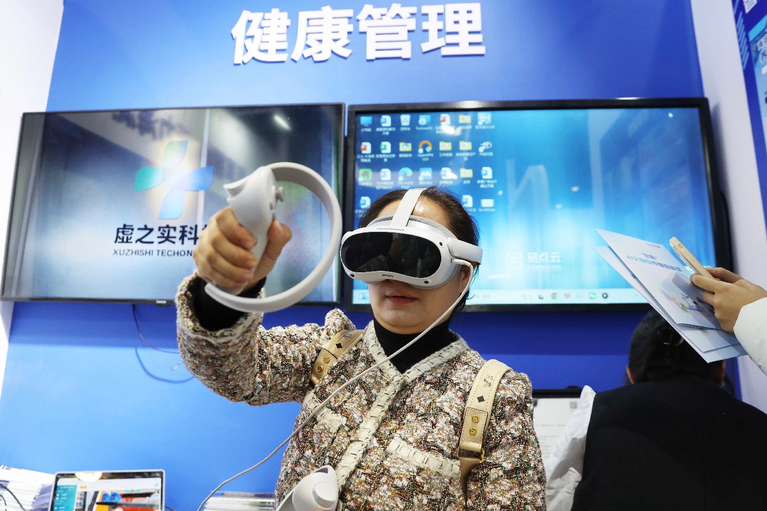 10月29日,参观者体验VR认知功能康复训练系统。当日正值重阳节,以“智享银龄颐养四方”为主题的第十一届北京国际老龄产业博览会在位于北京的国家会议中心二期举行。(图片来源:本文图片均自中新社)