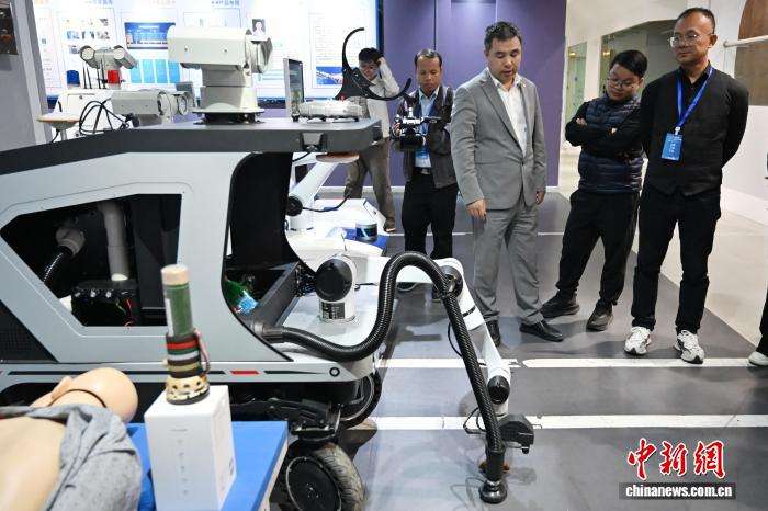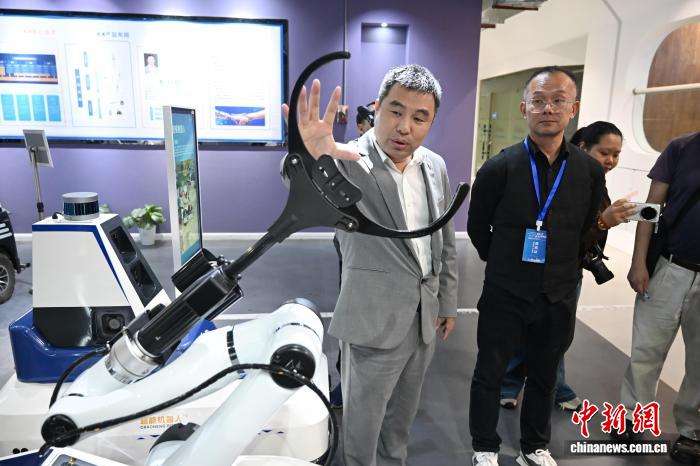 工作人员介绍机场清道夫机器人。(图片来源:本文图片均据中新网)
