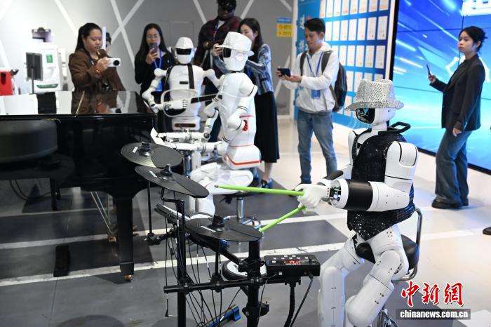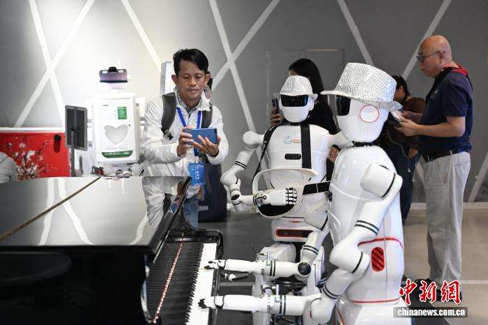 海外媒体拍摄弹奏音乐的机器人。
