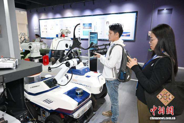 工作人员介绍安保机器人。