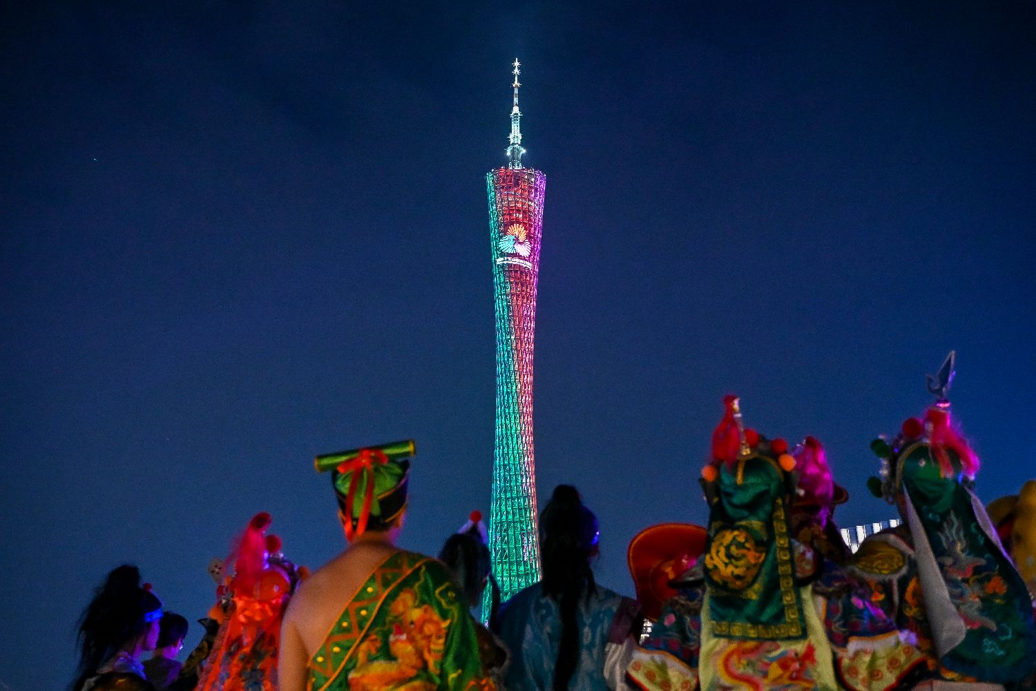 图为10月29日晚,全运会主题灯光秀亮相广州塔。