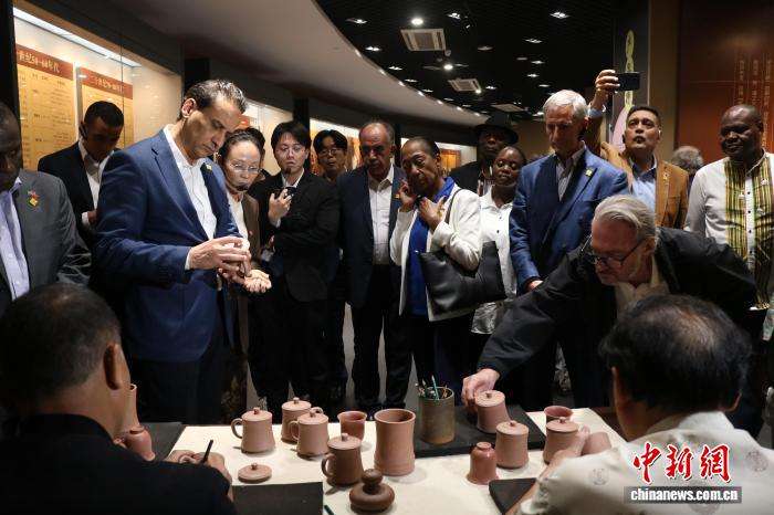 10月30日,来自20多个国家的驻华大使及外交官走进广西钦州坭兴陶博物馆,聆听坭兴陶发展历史,近距离感受坭兴陶的独特魅力。(图片来源:本文图片均据中新网)