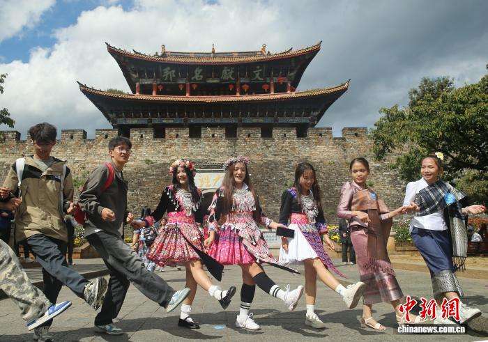 10月31日,同学们在大理古城起舞。(图片来源:本文图片均来自中新网)