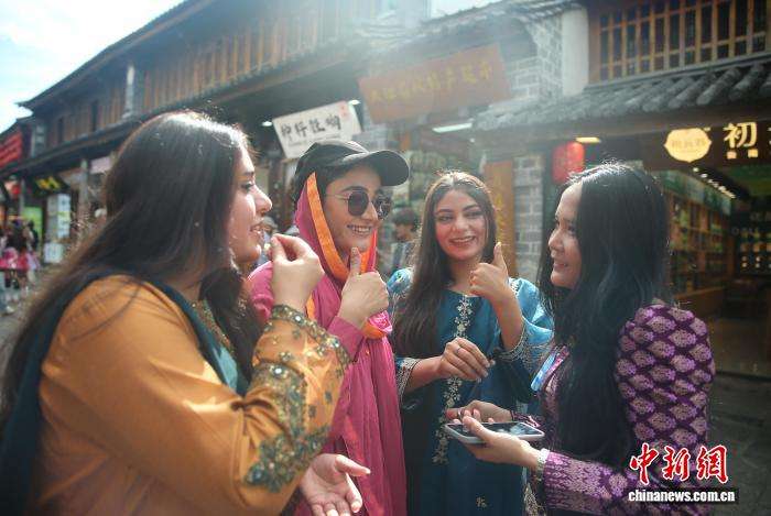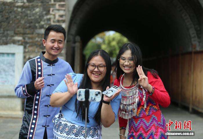 10月31日,三名留学生在大理古城拍摄。
