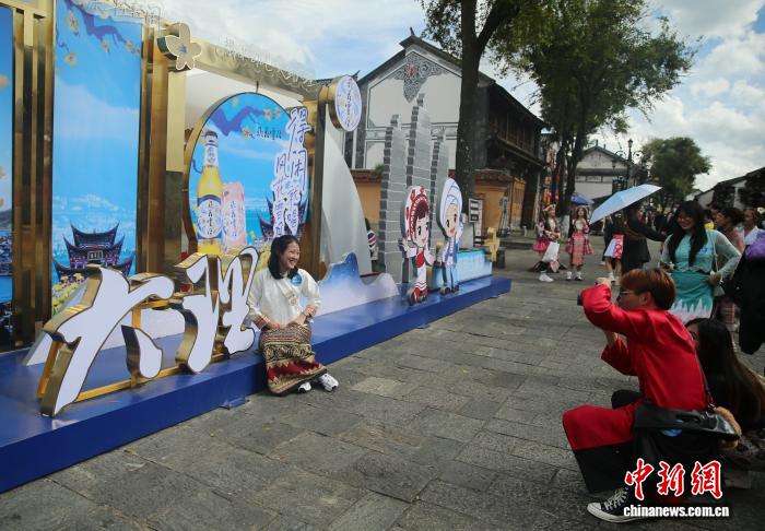 10月31日,两名留学生在大理古城拍摄。