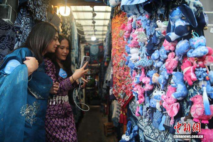 10月31日,两名留学生在大理古城拍摄文创品。