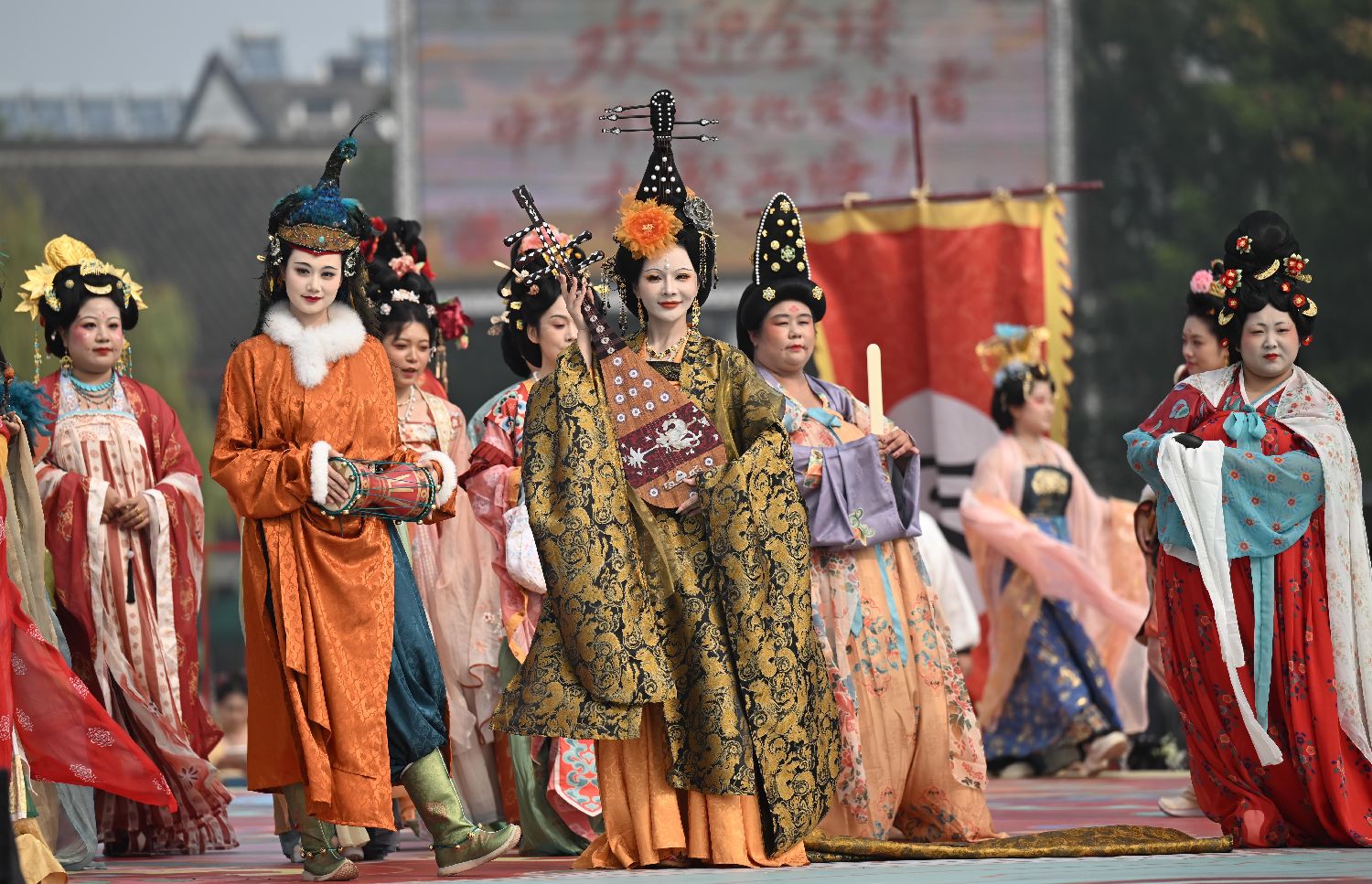 11月1日,国际友人身着汉服进行方阵展示。当日,第十三届西塘汉服文化周在浙江嘉兴西塘古镇开幕,30余个主题方阵轮番走秀,集中呈现华夏衣冠的千年风华。(图片来源:本文图片均自中新社)