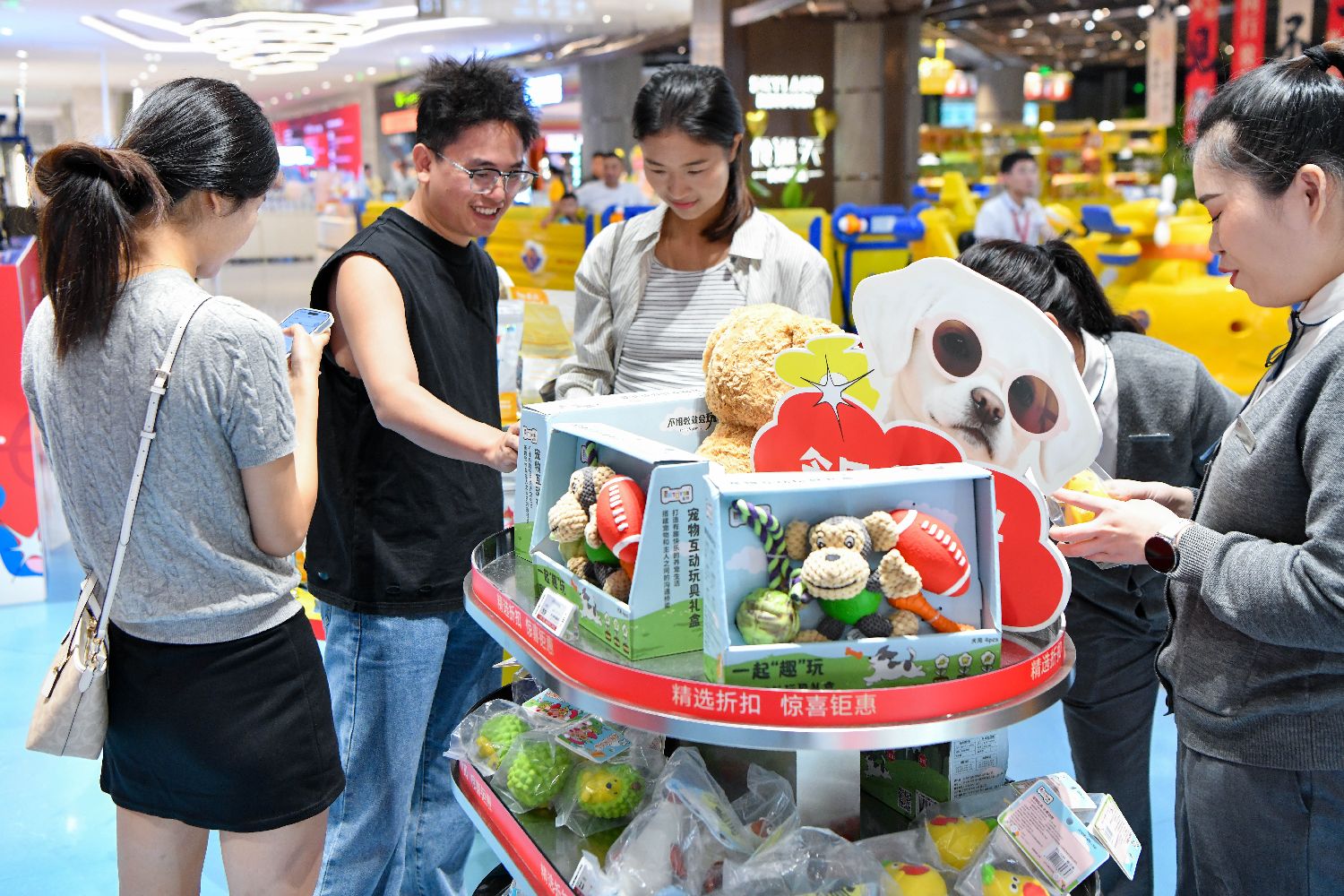11月1日,在海南海口,顾客在cdf海口国际免税城选购宠物用品。为支持海南自由贸易港建设,中国财政部、海关总署、税务总局联合印发公告,从11月1日起,调整升级海南离岛旅客免税购物政策。(图片来源:本文图片均自中新社)