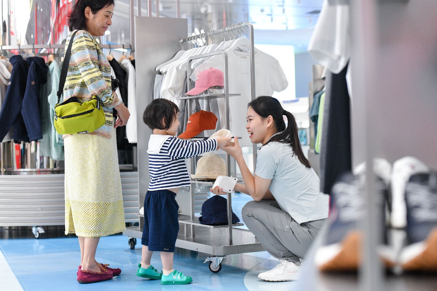 具体调整事项包括,新增宠物用品、可随身携带的乐器2类商品,调整后离岛免税商品由45大类提高至47大类;允许服装服饰、鞋帽、陶瓷制品、丝巾、咖啡、茶等国内商品,进入离岛免税店销售,退(免)增值税、消费税;将离岛旅客免税购物年龄由年满16周岁调整为年满18周岁;允许离境旅客享受离岛免税政策,离岛且离境旅客购买离岛免税商品金额计入其每年10万元人民币免税购物额度,不限次数;对一个自然年度内有离岛记录的岛内居民,在本自然年度内可按“即购即提”提货方式有关要求,不限次数购买离岛免税商品。图为11月1日,顾客在cdf海口国际免税城选购服装服饰。