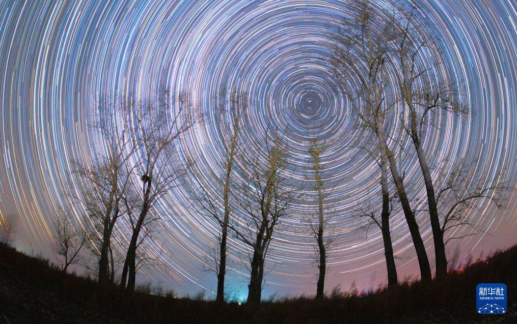 10月30日在黑龙江省同江市拍摄的星空下的秋树。